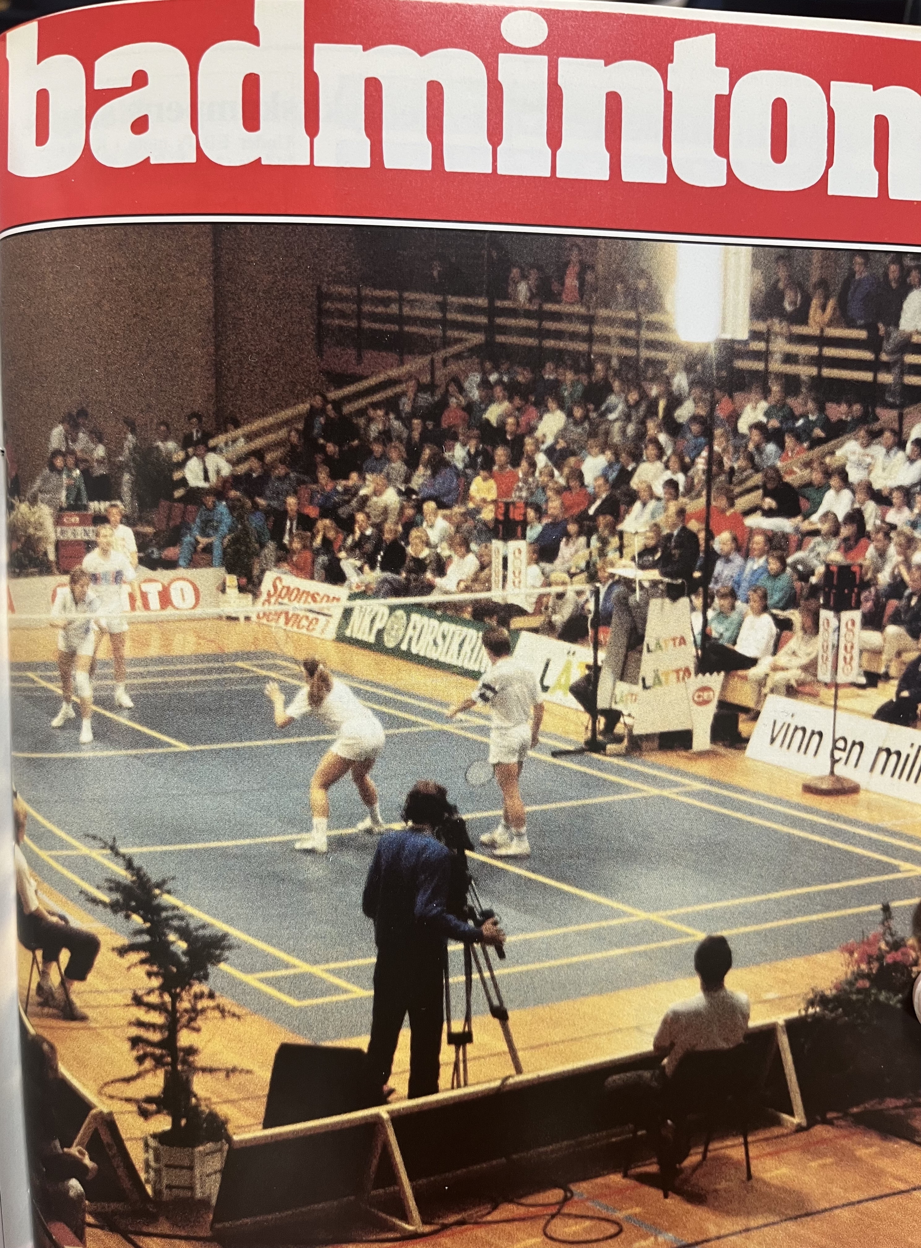 BADMINTON-BLADET: Til v. forsiden nr. 2 1988 med bildet fra finalen i mixed double i EM, og artikkel med forhåndsomtale fra Badmintonbladet nr. 1 1988.