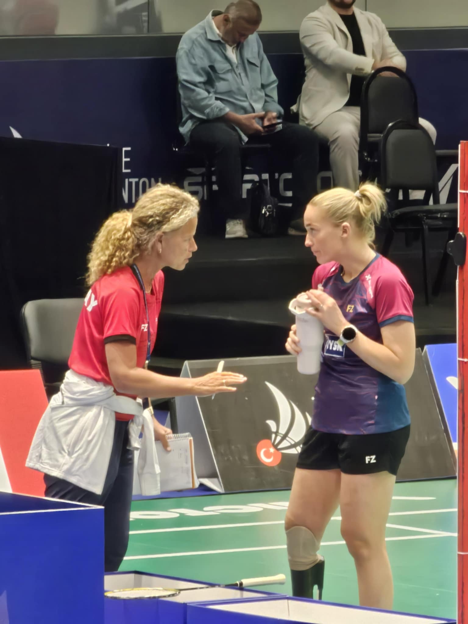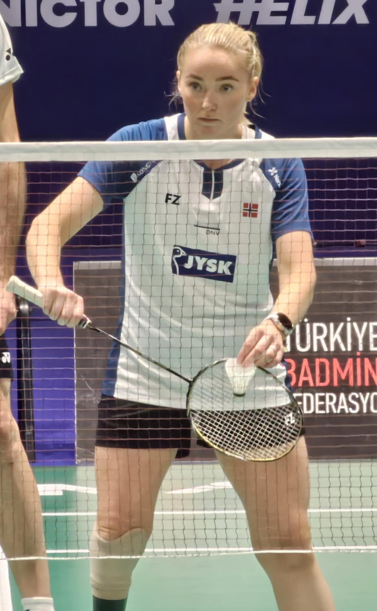 Helle Sofie og Majorie fra Frankrike har ikke hatt noen store utfordringer i sine puljekamper. Første kampen le vunnet 21-10, 21-9 og dermed viste de styrke da dette paret var seedet i turneringen som nr. 2. Begge damene ser ut til å storkose seg sammen på banen og det var tidlig en god kjemi som tilsa at spillet også begynner å sitte. Den siste puljekampen spilles senere torsdag, men som puljevinnere får Norge/Frankrike douen en god vei inn mot medaljene.